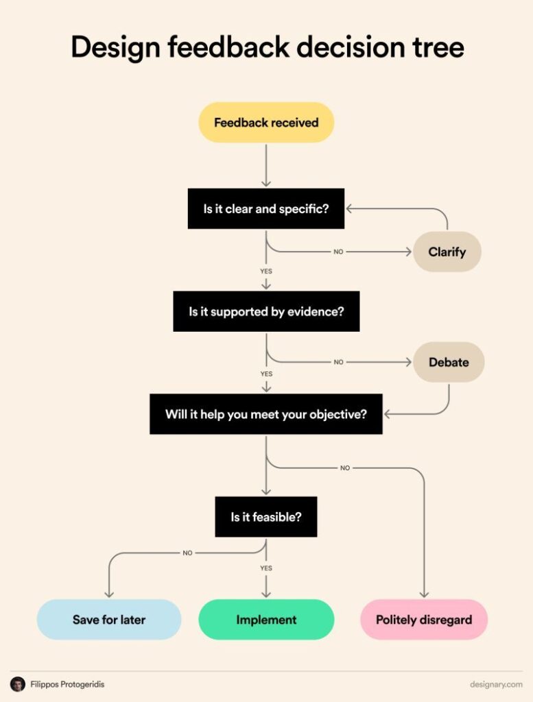 I have a simple decision tree I’ve used throughout my career as a thought process when dealing with feedback from multiple stakeholders.